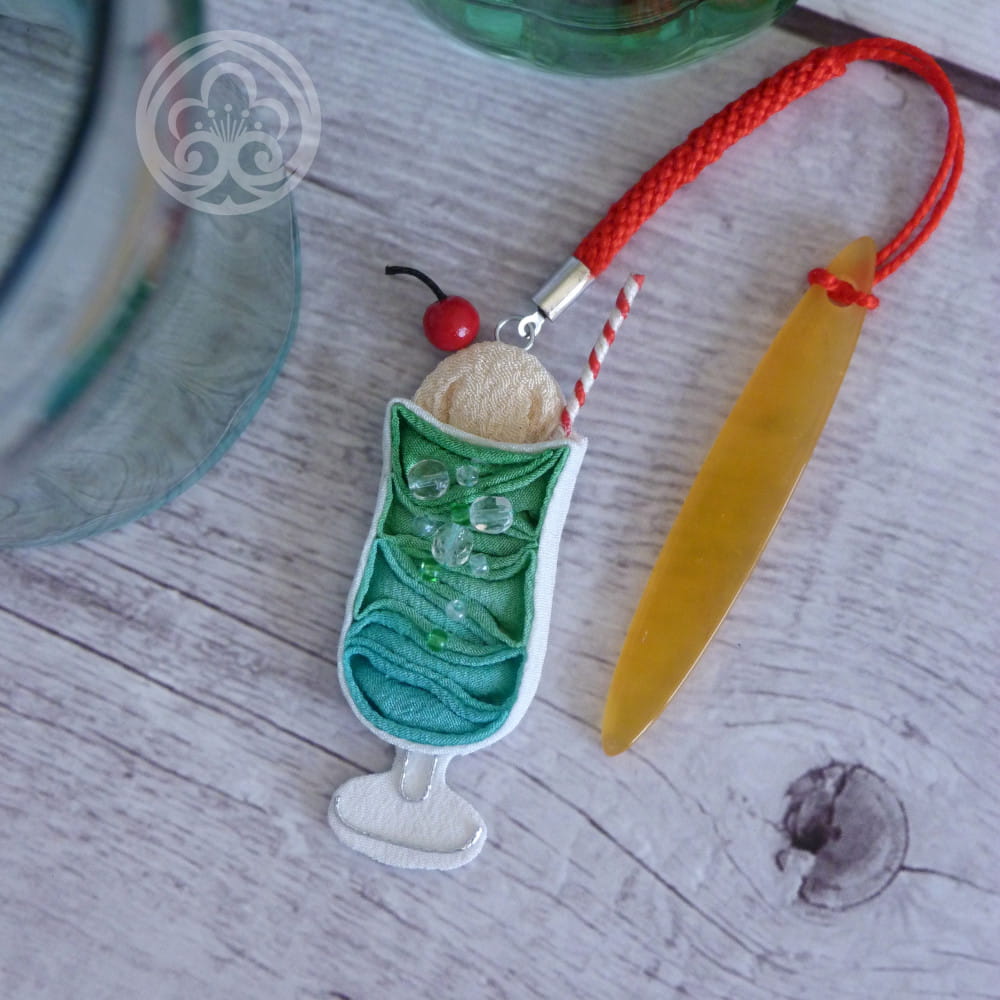 Questo piccolo accessorio per decorare l’obi rappresenta una bevanda giapponese famosa per il suo colore verde.